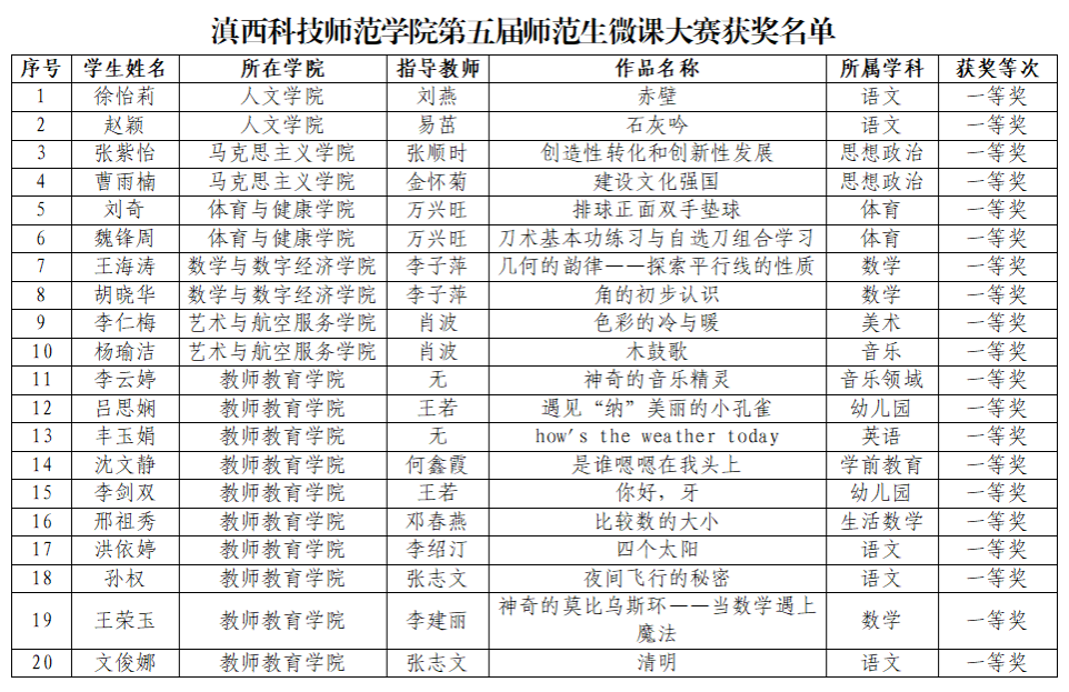 近日,滇西科技师范学院第五届师范生微课大赛圆满落幕。本次大赛由教务处牵头组织,各相关学院协同配合,自3月份正式启动以来,历经两个多月的激烈角逐,吸引了学校9个师范类专业的全日制在校本科生踊跃参与。
