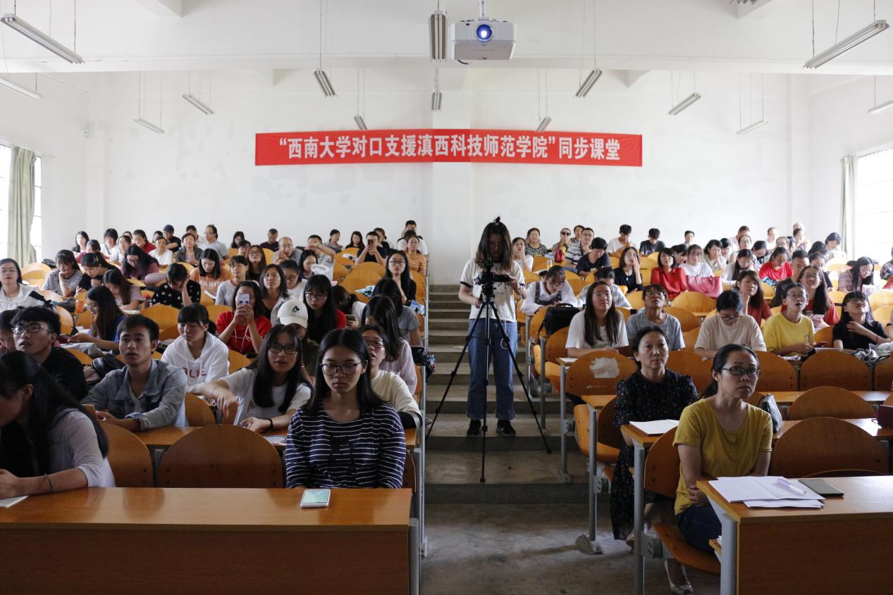 6月21日下午,为推进我校教学信息化改革工作,加强校校、校企合作,拓展校外优质教学资源的共享方式和渠道,我校首次利用超星“一平三端”智慧教学平台开展了“西南大学对口支援滇西科技师范学院”同步课堂教学活动。