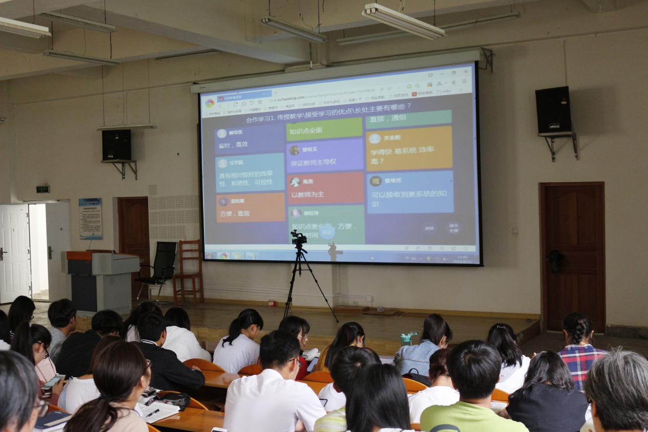 同步课堂由西南大学、超星集团和滇西科技师范学院共同组织完成,西南大学白智宏副教授主讲,西南大学40位同学和滇西科技师范学院98位同学同时参加。整个教学过程使用翻转课堂模式在超星“一平三端”平台进行,包括课前线上学习,课堂签到、投票、主题讨论、两校学生互动讨论和同伴教学,课后作业和实践任务布置等环节。